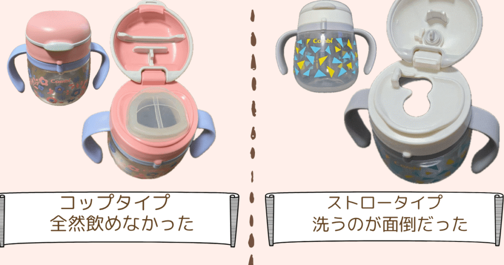 すぐに普通のコップで飲めるようになるので、買わなくて大丈夫。
